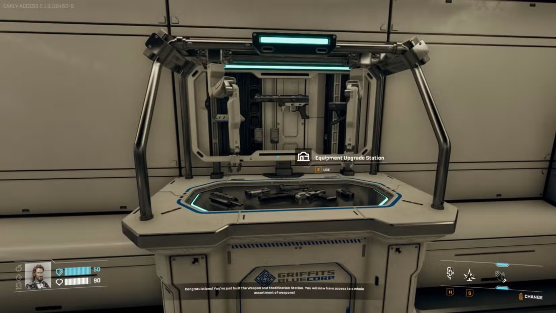 Die Ausrüstungs-Upgrade-Station ist der Ort, an dem StarRupture wirklich aufblüht. Sie ist dein Tor zu echter Feuerkraft und Waffenanpassung. Um sie freizuschalten, musst du Level 4 bei der Griffits Blue Corporation erreichen, wofür du 6.400 Corporation-Punkte brauchst. Die meisten dieser Punkte verdienst du dir durch das Einreichen bestimmter Materialien.